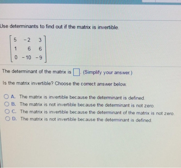 Solved Use Determinants To Find Out If The Matrix Is Chegg Com